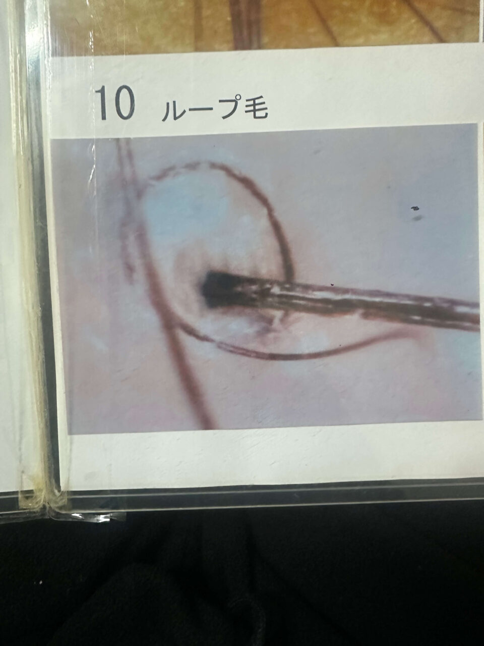 マイクロスコープで見ると、髪の毛がループして生えているように見えることもあり、私たちはそれを「ループ毛」と呼ぶこともあります。